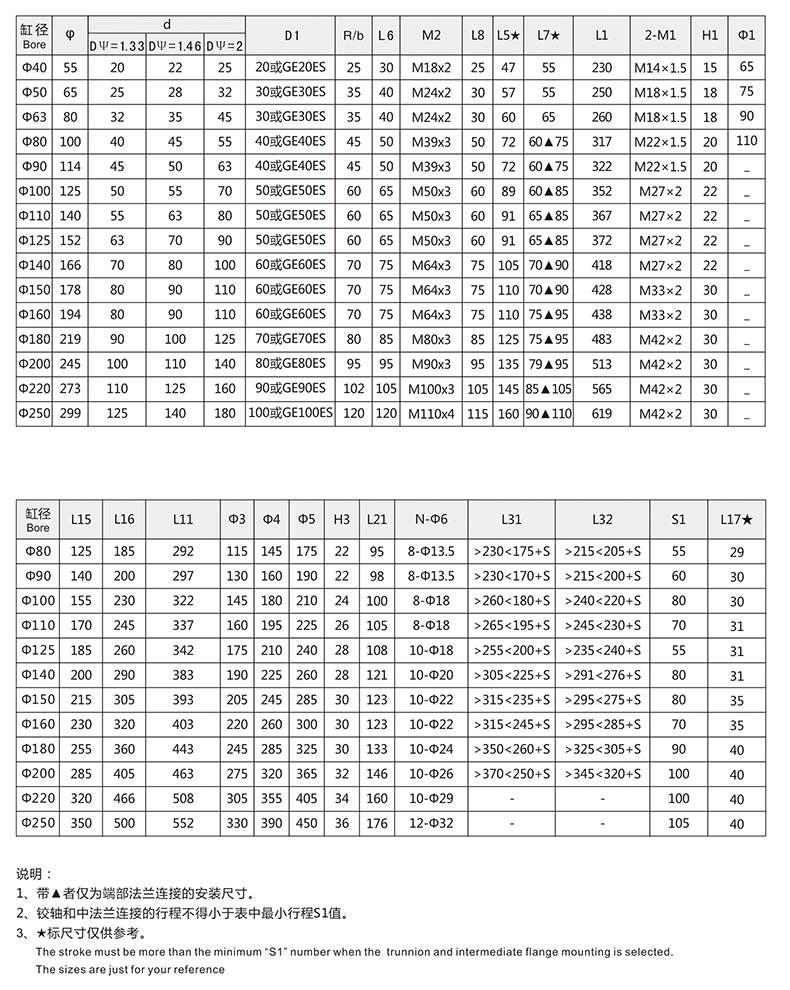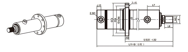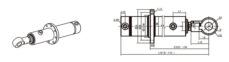 活塞桿端為內螺紋桿頭耳環(huán)連接