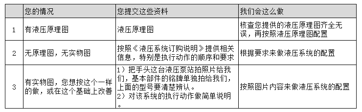 做一臺液壓系統(tǒng)需要客戶提供液壓要達到什么樣的功能要求。液壓系統(tǒng)的整個工作過程。比如一共有幾個油缸或馬達,每個油缸需要達到多少推力,每個油缸的速度是多少是否有變化,以及每個油缸的負(fù)載情況。多個油缸時,是否有同時工作或同步要求。(是否變化、還需要提供工作時間、工作環(huán)境)