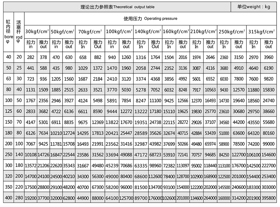 3)缸內(nèi)徑和活塞桿直徑的單位為毫米mm。
