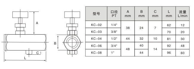 分享產(chǎn)品KC管式節(jié)流閥又稱CS流量控制閥,KC-02即CS1002,壓力21Mpa,流量10L/min